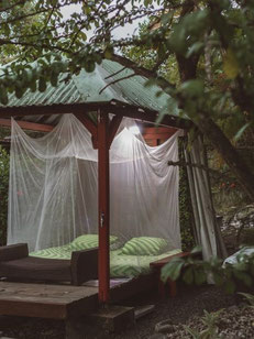 Vous pouvez ainsi passer la nuit parfaitement installés sous un carbet équipé d'une moustiquaire.