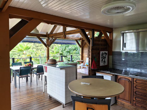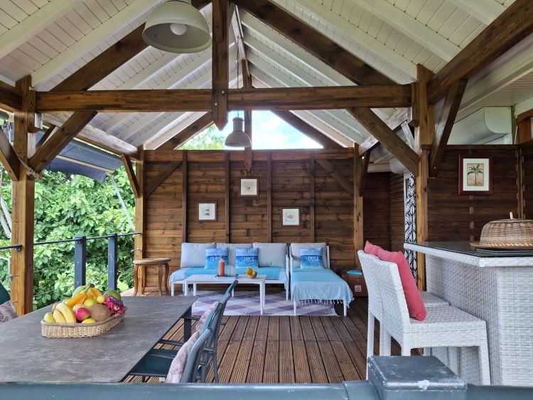 • 1 grande galerie panoramique (terrasse couverte de 25 m2) équipée d'un bar, d'un salon et d'un espace repas pour 6 personnes